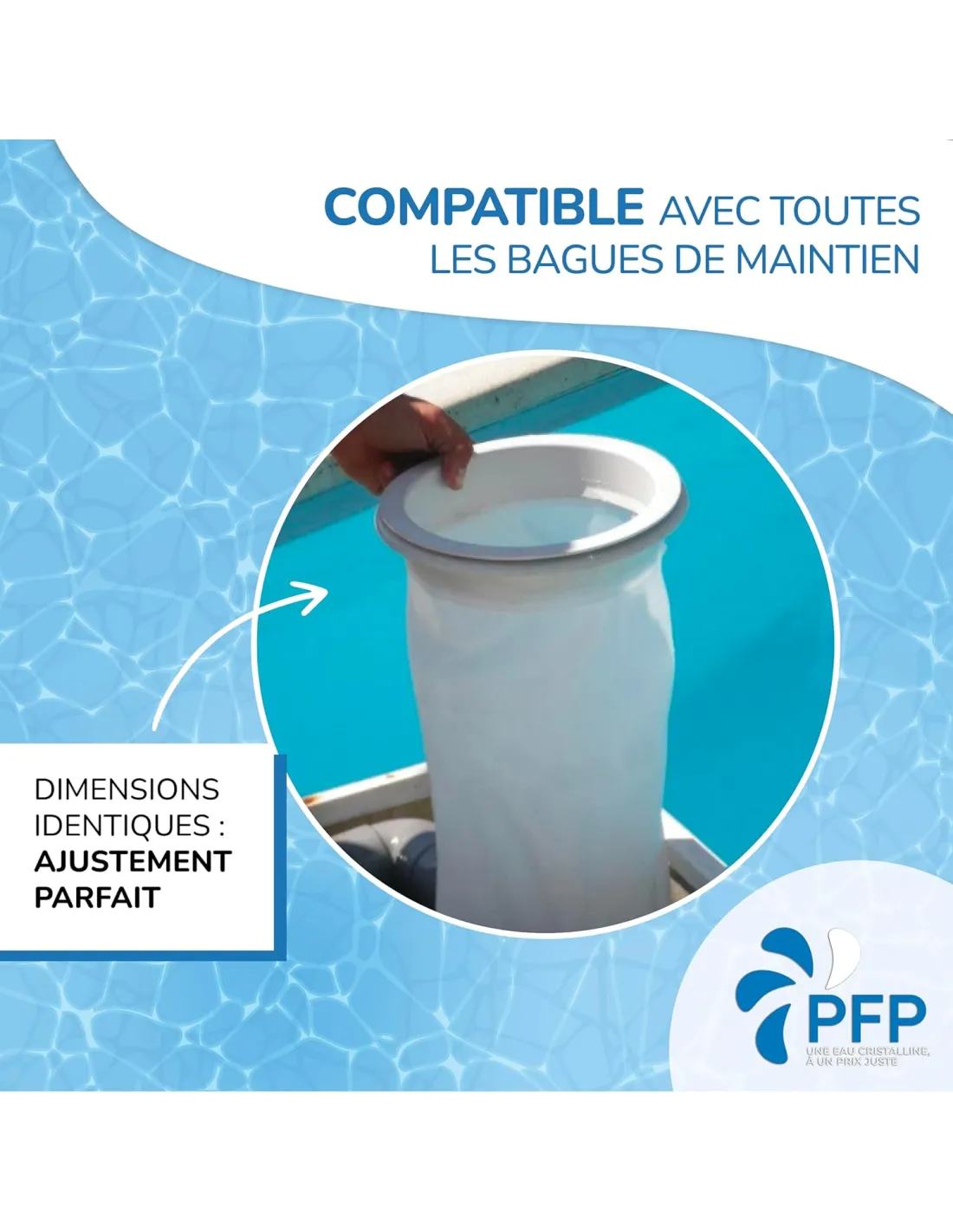 - COMPATIBILITÉ DESJOYAUX - Poche filtrante piscine compatible avec les blocs filtrants Desjoyaux F15, PF 180, PFI 180, PFI 181, PF.I 250 et PF.R-250-98 ainsi que les systèmes compatibles. Non compatible avec le système GR.I 110. Conçue pour s’installer dans votre filtre skimmer piscine panier avec bagues de maintien. Toutes les marques citées restent la propriété de leurs déposants respectifs et sont utilisées uniquement à titre informatif de compatibilité.